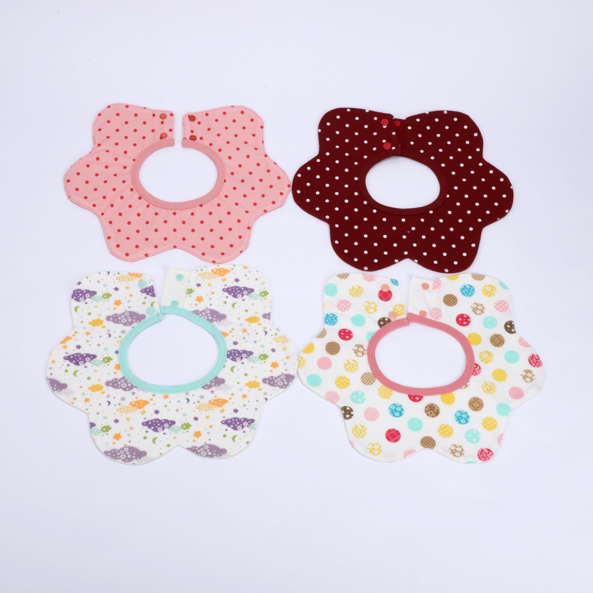 Baby cotton waterproof bib, comfortable and soft, waterproof and breathable, flower shape.