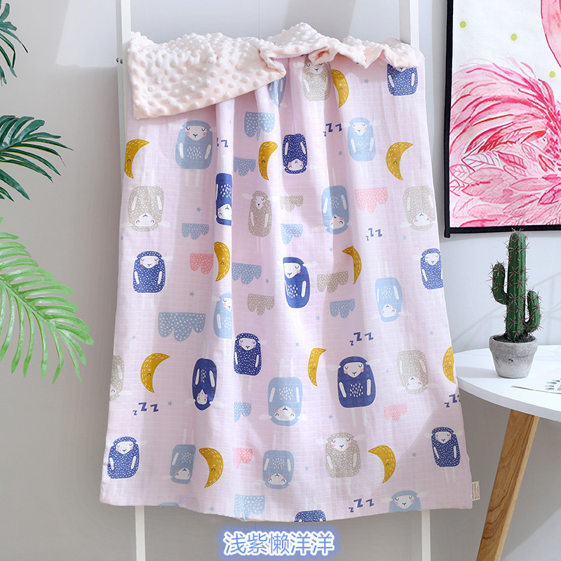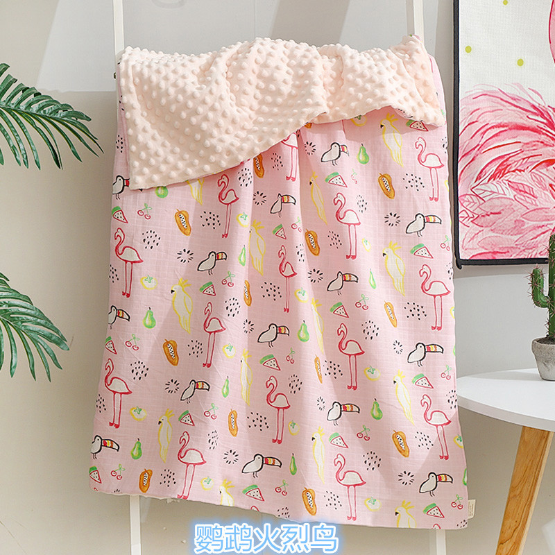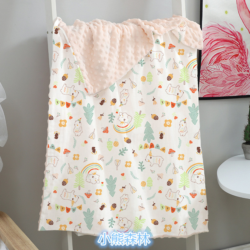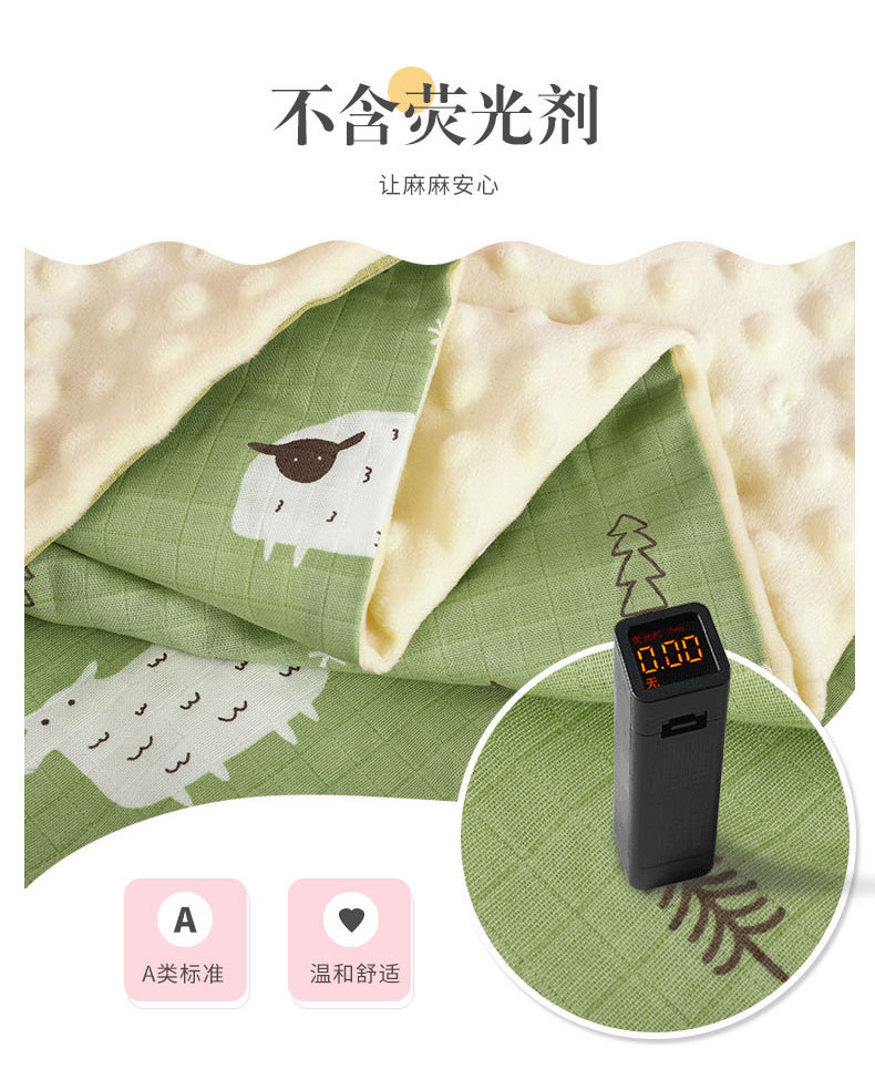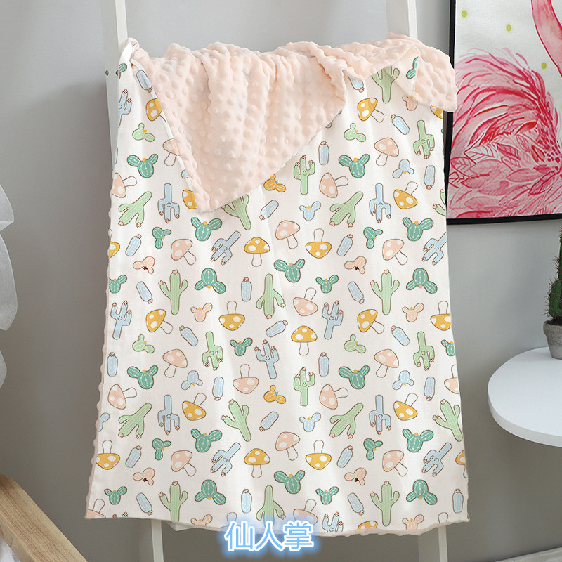 The 3D bubble pressing process is used to give the baby a numb and caressing feeling. The surface of the bean blanket is made of MUSLIN double-layer gauze and the inner layer is made of polyester fiber. The inner layer is made of material to isolate cold air, and the surface gauze is breathable and not stuffy, allowing the baby to sleep comfortably.