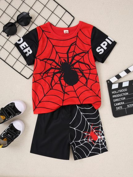 baby boy spider-man clothing set ,summer T-shirt and pants