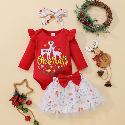 Chrismas baby girl clothes set ,baby romper with heat band